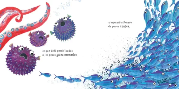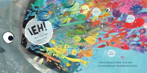 Kate Read, autora de Un Zorro, presenta un trepidante relato de misterio, lleno de humor y sorpresas. Además de una historia original y entretenida, el libro ofrece una doble página con curiosidades sobre los amigos del pececito rosa: ¿por qué las sardinas nadan en grupo?, ¿cómo se camufla el pulpo?, ¿qué hacen los cangrejos cuando se asustan?