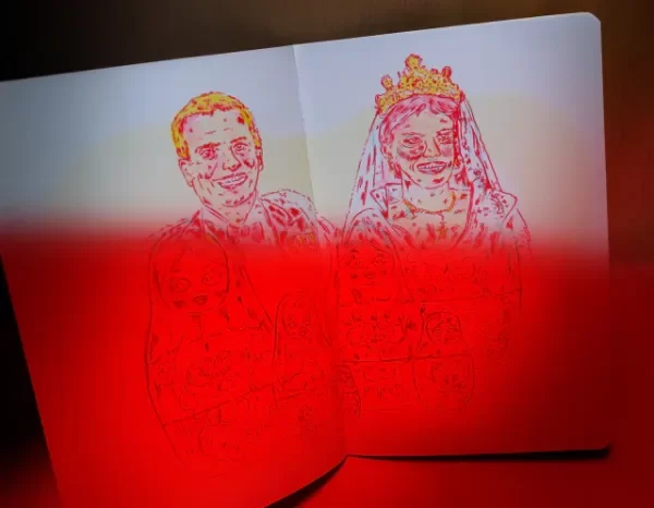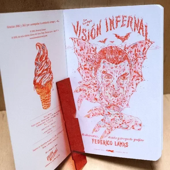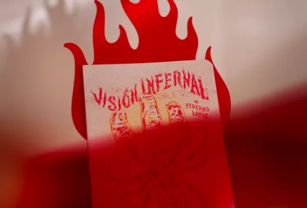 «Visión Infernal» es una obra singular, para jóvenes y adultos, un libro que propone un ejercicio óptico para descubrir una segunda realidad escondida, que solo puede verse a través de un lente de última tecnología. Un libro para compartir, divertirse y preguntarse, ¿cuál es la imagen correcta?, si acaso existiera alguna.