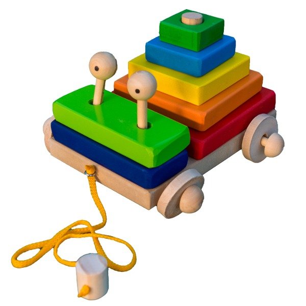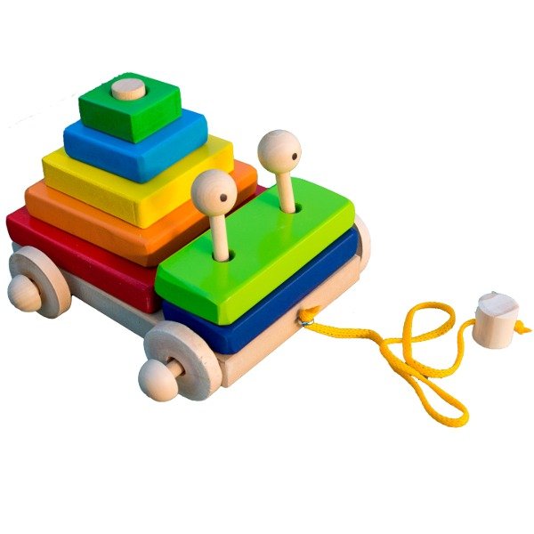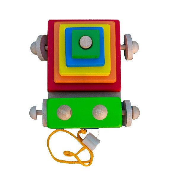 Contiene: Juguete de arrastre con 7 bloques en seriación, 2 ojitos, 4 ruedas, soga para jalar con pituto en el extremo. Todas sus partes son extraibles.