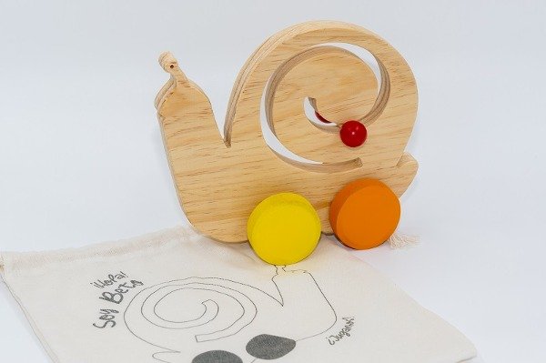Contiene: Caracol de arrastre con buscacamino, cuatro ruedas y colores llamativos en práctica bolsa de tela ajustable.